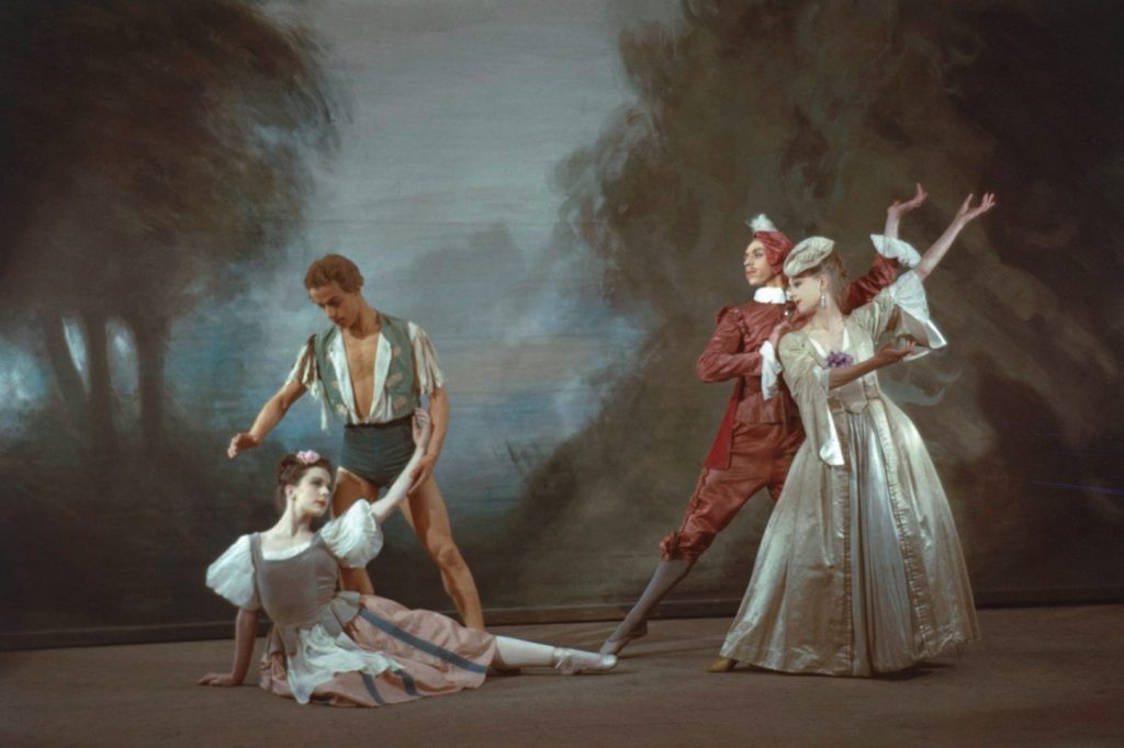 THE GODS GO A'BEGGING ; Anne Heaton (as A serving Maid), Leo Kersley (as A Shepherd), Alan Carter (as a Nobleman), and Joan Harris (as a Court Lady) ; Sadler's Wells Opera Ballet ; At Sadler's Wells Theatre, London UK 1946 ; Credit : Frank Sharman / Royal Opera House / ArenaPAL